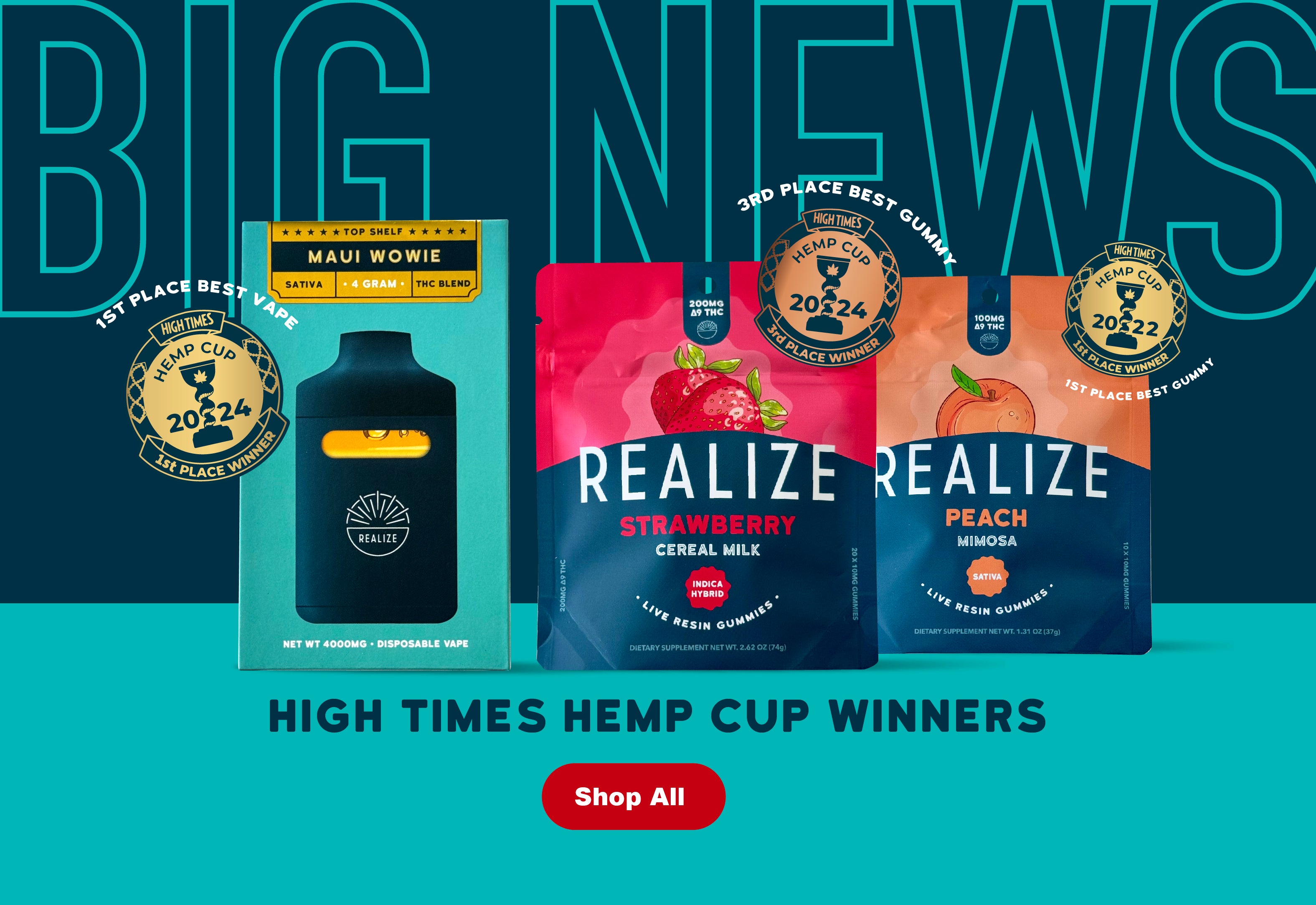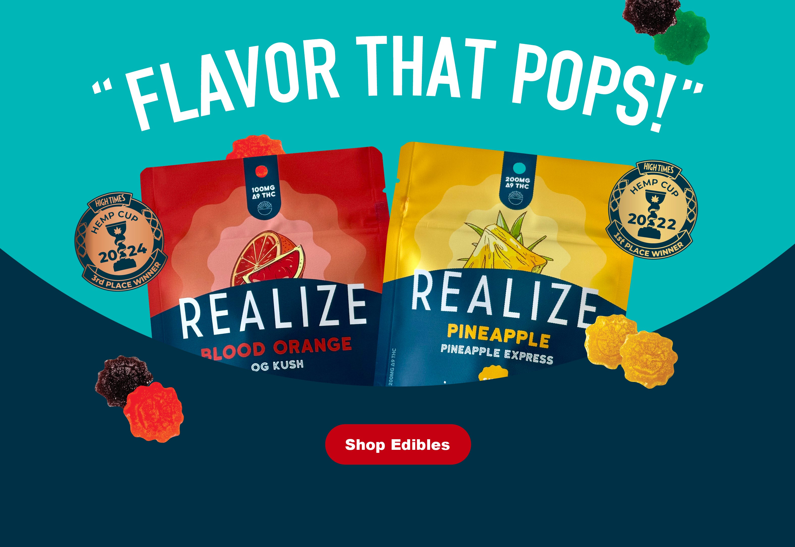 Third Place: Realize - Strawberry, Cereal Milk Live Resin Gummies